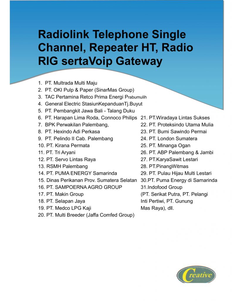 Polahubungan yang sehat tidak saja dikembangkan dalam lingkungan internal, namun juga terhadap lingkungan eksternal. Pesaing tidak dianggap sebagai pesaing, melainkan sebagai mitra atau partner. Client atau konsumen tidak dianggap sebagai objek, melainkan sebagai Stakeholders. Karena dengan dukungan dari rekan konsumenlah, perusahaan dapat bertahan dan berkembang hingga saat ini. Halaman berikut, adalah beberapa client dan pekerjaan sesuai keahlian yang telah dikerjakan ;