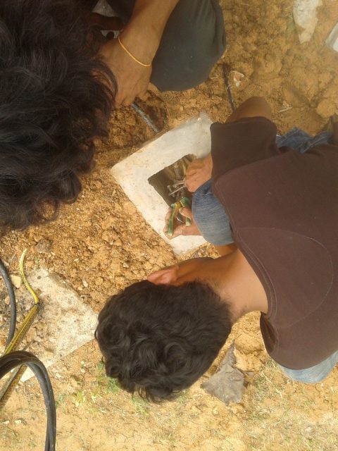 Batang penyalur petir berupa batang tembaga yang ujungnya runcing. Dibuat runcing karena muatan listrik mempunyai sifat mudah berkumpul dan lepas pada ujung logam yang runcing. Dengan demikian dapat memperlancar proses tarik menarik dengan muatan listrik yang ada di awan. Batang runcing ini dipasang pada bagian puncak suatu bangunan. Kabel konduktor terbuat dari jalinan kawat tembaga. Diameter jalinan kabel konduktor sekitar 1 cm hingga 2 cm . Kabel konduktor berfungsi meneruskan aliran muatan listrik dari batang muatan listrik ke tanah. Kabel konduktor tersebut dipasang pada dinding di bagian luar bangunan Tempat pembumian (grounding) berfungsi mengalirkan muatan listrik dari kabel konduktor ke batang pembumian (ground rod) yang tertanam di tanah. Batang pembumian terbuat dari bahan tembaga berlapis baja, dengan diameter 1,5 cm dan panjang sekitar 1,8 – 3 m.